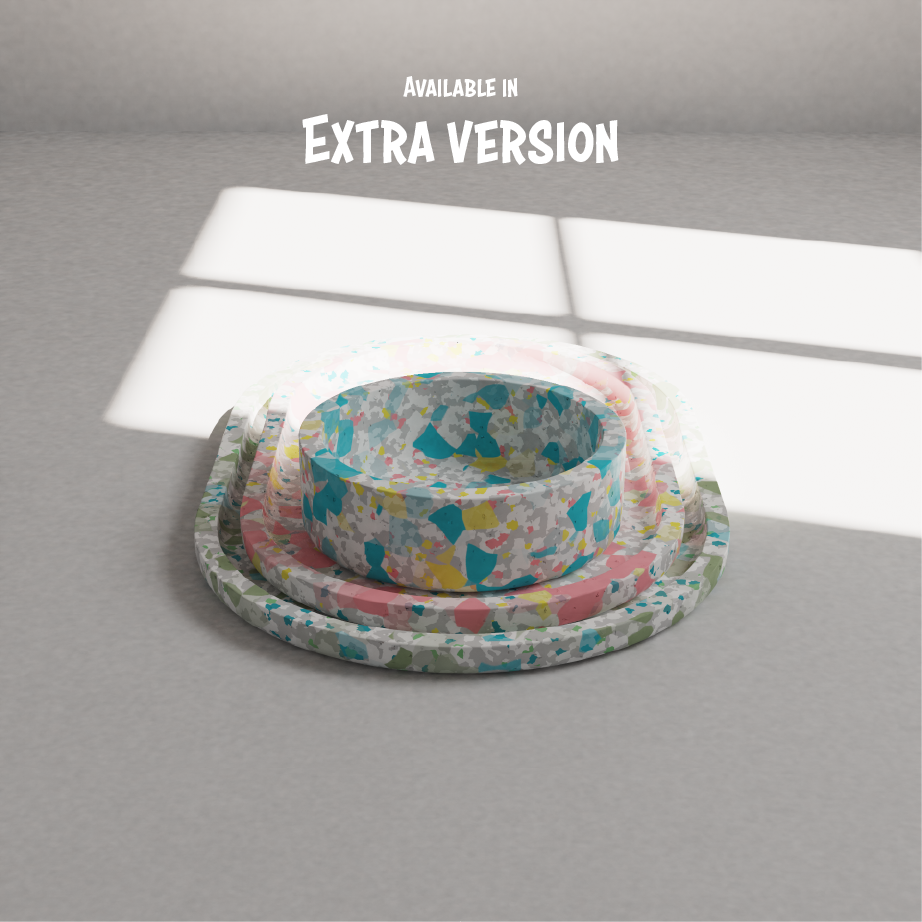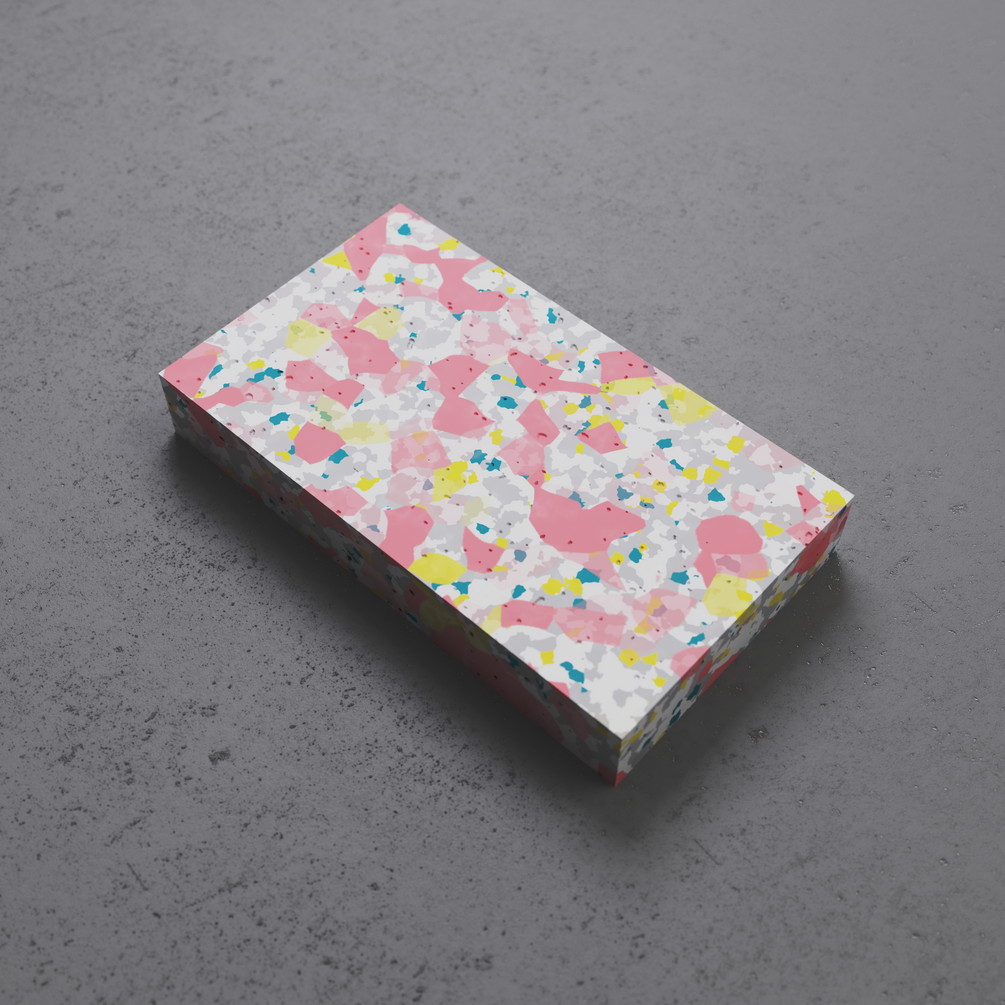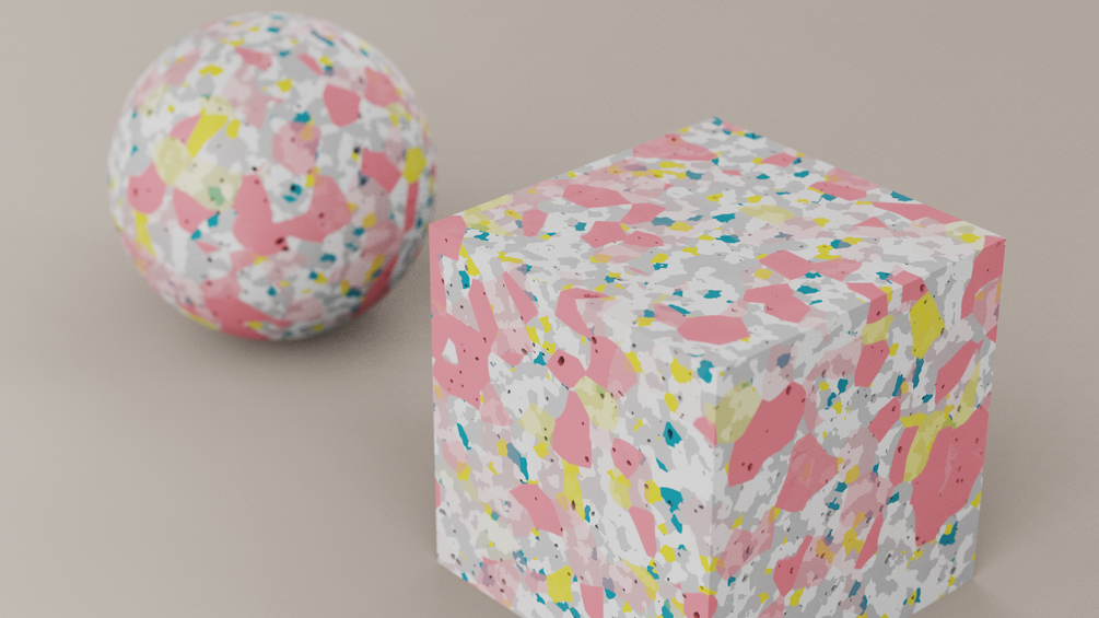 A material heavily inspired by the Jesmonite material, inside a couple of different Keyshot KSPs. Created in Keyshot 8, and uses displacement.